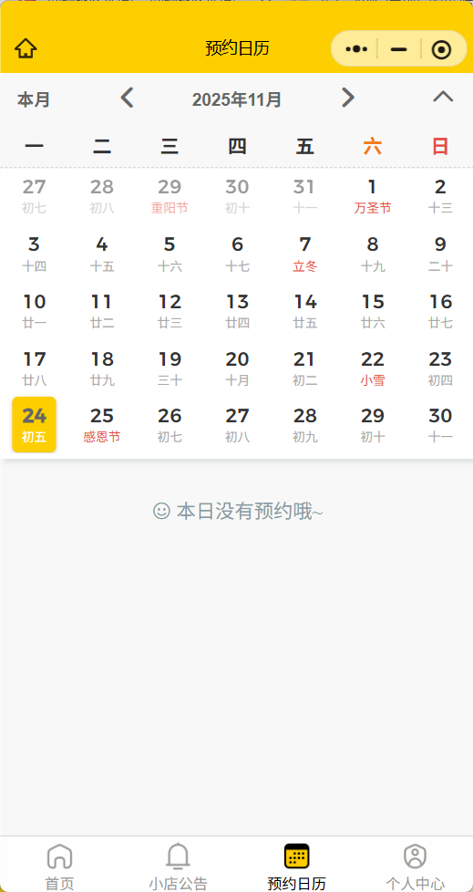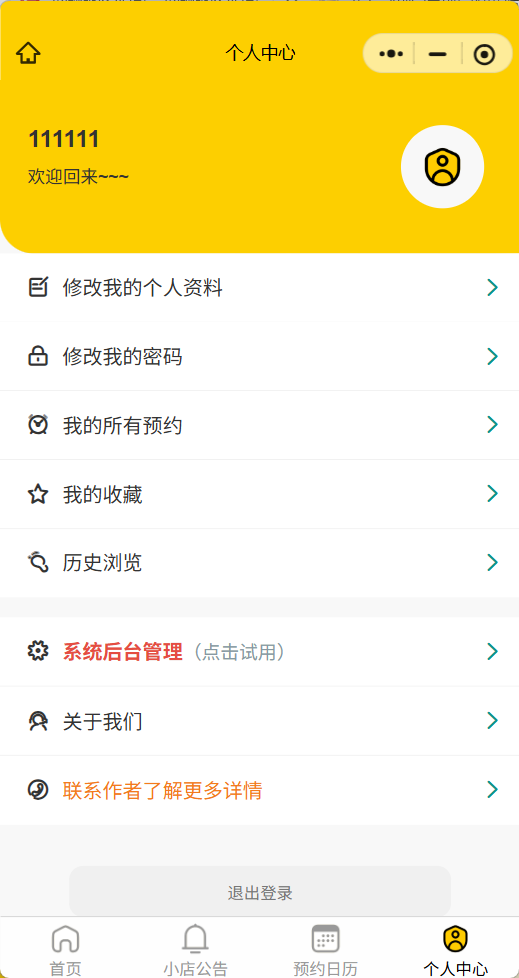 - 管理员角色:管理服务、查看所有预约记录、核销预约、管理用户等